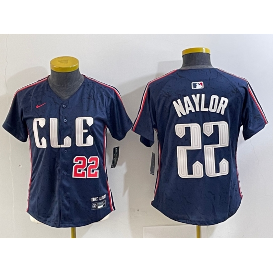 Women's Cleveland Guardians #22 Josh Naylor Number Navy 2024 City Connect Limited Stitched Jerseys