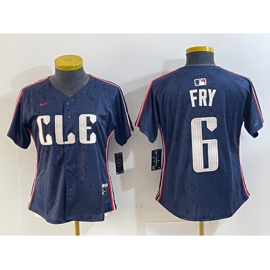 Women's Cleveland Guardians #6 David Fry Navy 2024 City Connect Limited Stitched Jerseys