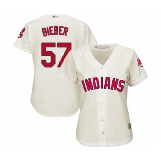 >Women's Cleveland Indians #57 Shane Bieber Authentic White Home Cool Base Baseball Jersey