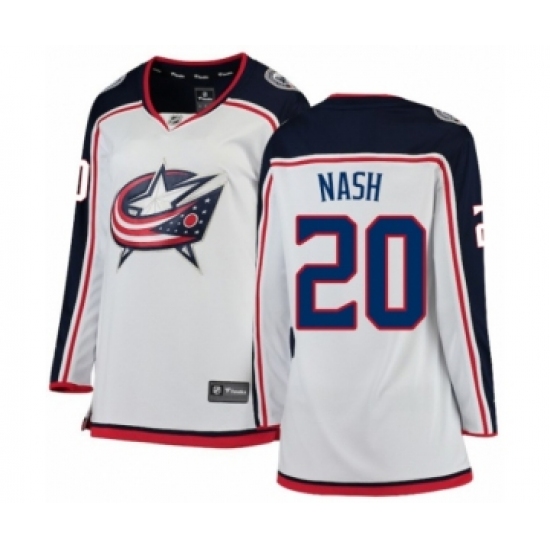 Women's Columbus Blue Jackets #20 Riley Nash Authentic White Away Fanatics Branded Breakaway NHL Jersey