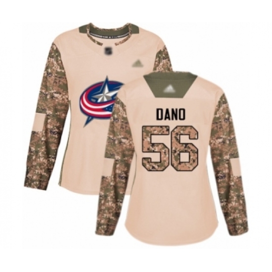 >Women's Columbus Blue Jackets #56 Marko Dano Authentic Camo Veterans Day Practice Hockey Jersey