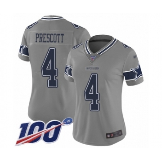 Women's Dallas Cowboys #4 Dak Prescott Limited Gray Inverted Legend 100th Season Football Jersey