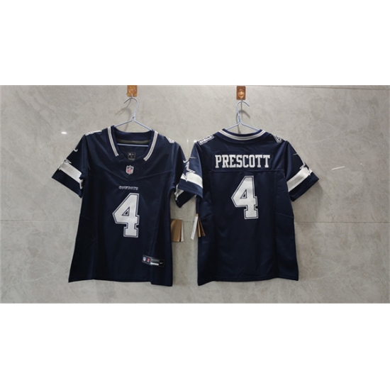 >Women's Dallas Cowboys #4 Dak Prescott Navy 2023 F.U.S.E. Limited Football Stitched Jersey(Run Small)