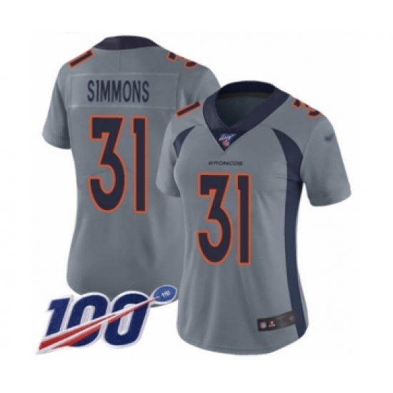 Women's Denver Broncos #31 Justin Simmons Limited Silver Inverted Legend 100th Season Football Jersey