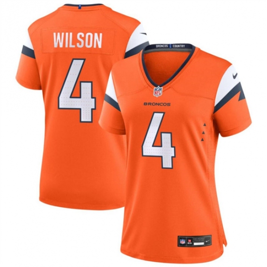 >Women's Denver Broncos #4 Zach Wilson Orange 2024 Stitched Jersey(Run Small)