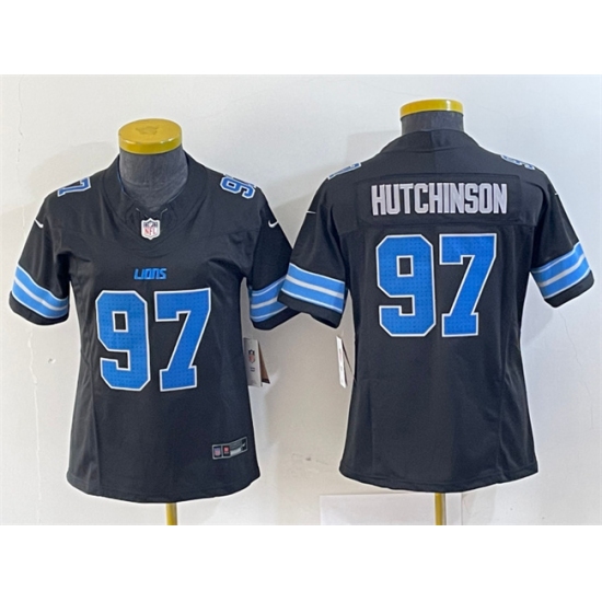 Women's Detroit Lions #97 Aidan Hutchinson Black 2nd Alternate Stitched Jersey(Run Smaller)
