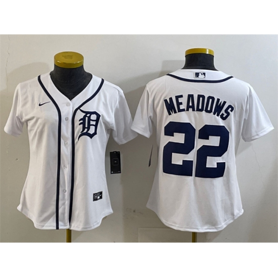 Women's Detroit Tigers #22 Parker Meadows White Cool Base Stitched Baseball Jersey(Run Small)