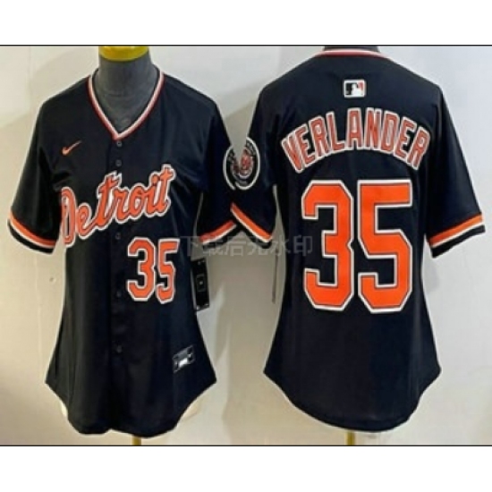 >Women's Detroit Tigers #35 Justin Verlander Black Stadium Jersey