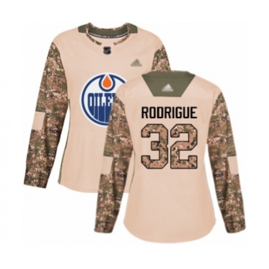 >Women's Edmonton Oilers #32 Olivier Rodrigue Authentic Camo Veterans Day Practice Hockey Jersey