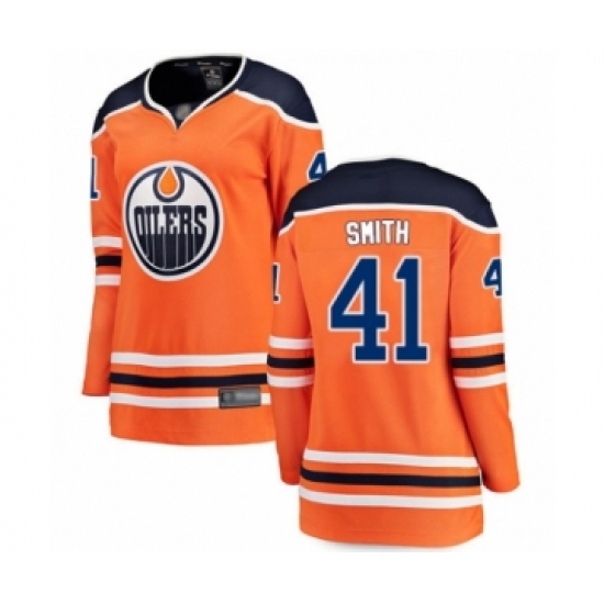 >Women's Edmonton Oilers #41 Mike Smith Authentic Orange Home Fanatics Branded Breakaway Hockey Jersey