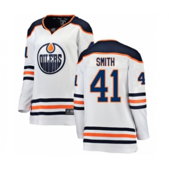 Women's Edmonton Oilers #41 Mike Smith Authentic White Away Fanatics Branded Breakaway Hockey Jersey