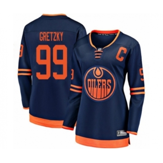 Women's Edmonton Oilers #99 Wayne Gretzky Authentic Navy Blue Alternate Fanatics Branded Breakaway Hockey Jersey