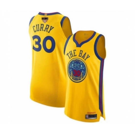 >Women's Golden State Warriors #30 Stephen Curry Swingman Gold 2019 Basketball Finals Bound Basketball Jersey - City Edition