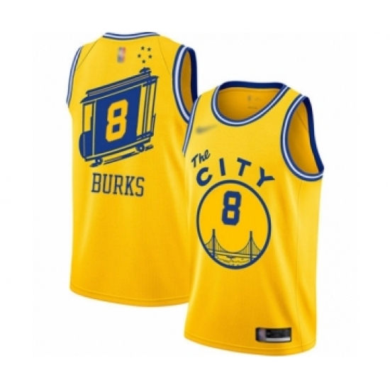 >Women's Golden State Warriors #8 Alec Burks Swingman Gold Hardwood Classics Basketball Jersey - The City Classic Edition