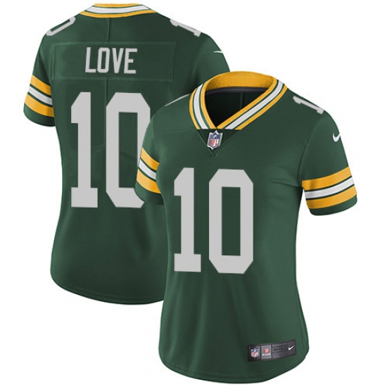>Women's Green Bay Packers #10 Jordan Love Green Team Color Stitched NFL Vapor Untouchable Limited Jersey