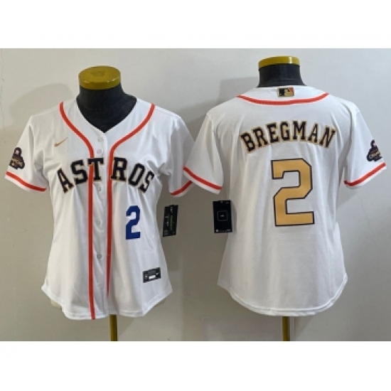 Women's Houston Astros #2 Alex Bregman 2023 White Gold World Serise Champions Cool Base Stitched Jersey