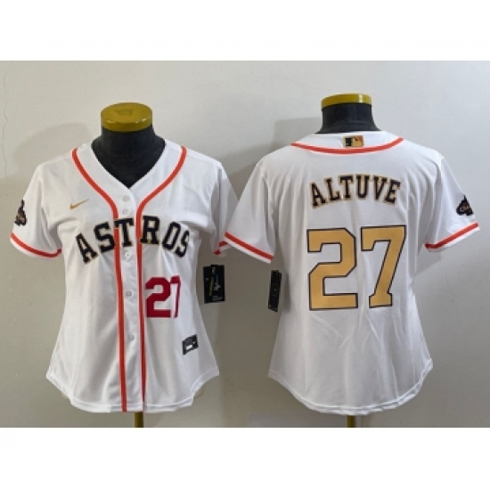 Women's Houston Astros #27 Jose Altuve Number 2023 White Gold World Serise Champions Cool Base Stitched Jersey