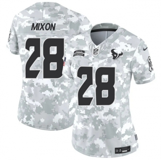 >Women's Houston Texans #28 Joe Mixon 2024 F.U.S.E Arctic Camo Salute To Service Limited Stitched Football Jersey(Run Small)