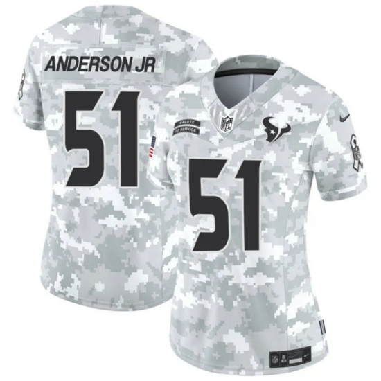 >Women's Houston Texans #51 Will Anderson Jr 2024 F.U.S.E Arctic Camo Salute To Service Limited Stitched Football Jersey(Run Small)