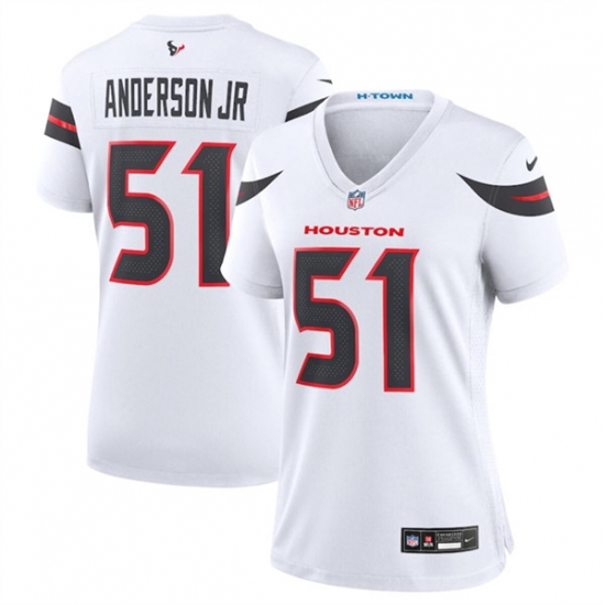>Women's Houston Texans #51 Will Anderson Jr. White 2024 Stitched Jersey