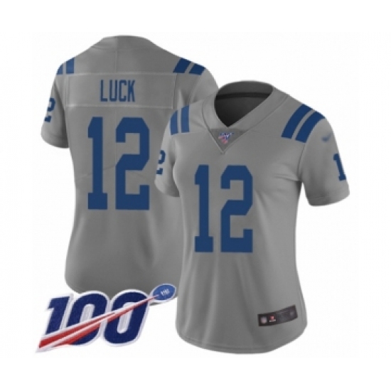 Women's Indianapolis Colts #12 Andrew Luck Limited Gray Inverted Legend 100th Season Football Jersey