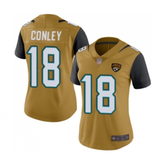 >Women's Jacksonville Jaguars #18 Chris Conley Limited Gold Rush Vapor Untouchable Football Jersey