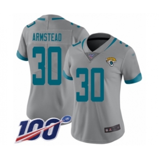 >Women's Jacksonville Jaguars #30 Ryquell Armstead Silver Inverted Legend Limited 100th Season Football Jersey