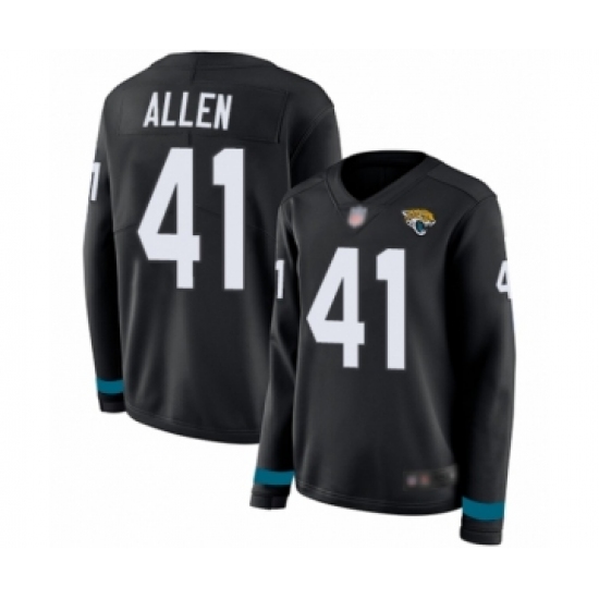 >Women's Jacksonville Jaguars #41 Josh Allen Limited Black Therma Long Sleeve Football Jersey