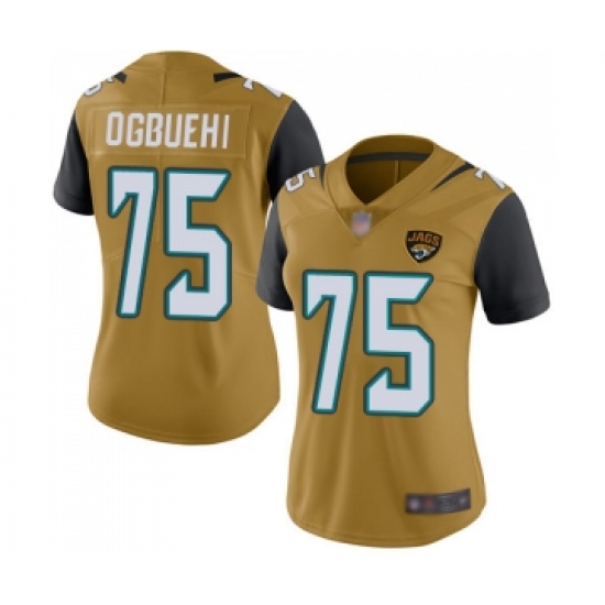 >Women's Jacksonville Jaguars #75 Cedric Ogbuehi Limited Gold Rush Vapor Untouchable Football Jersey