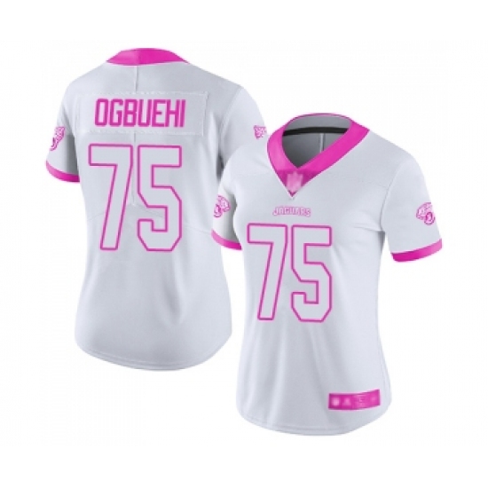 Women's Jacksonville Jaguars #75 Cedric Ogbuehi Limited White Pink Rush Fashion Football Jersey