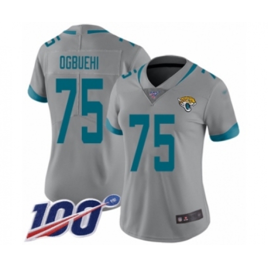 >Women's Jacksonville Jaguars #75 Cedric Ogbuehi Silver Inverted Legend Limited 100th Season Football Jersey