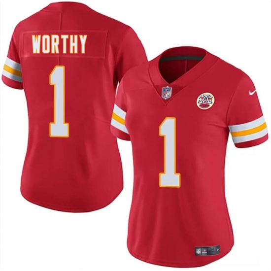 Women's Kansas City Chiefs #1 Xavier Worthy Red 2024 Draft Vapor Untouchable Limited Football Stitched Jersey