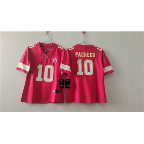>Women's Kansas City Chiefs #10 Isiah Pacheco Red Vapor Untouchable Limited Stitched Jersey(Run Small)