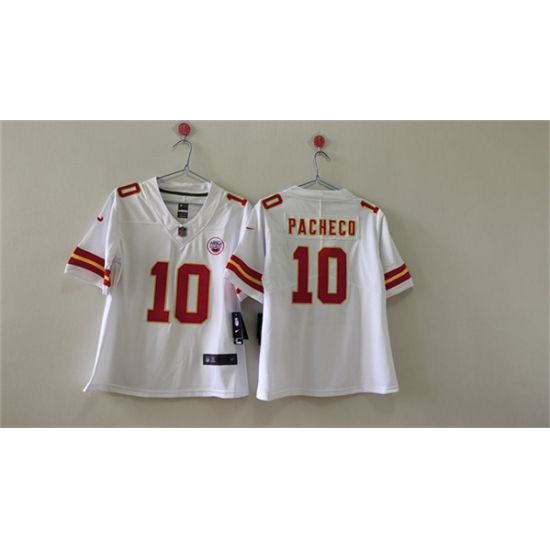 >Women's Kansas City Chiefs #10 Isiah Pacheco White Vapor Untouchable Limited Stitched Jersey(Run Small)
