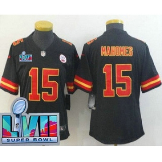 >Women's Kansas City Chiefs #15 Patrick Mahomes Limited Black Super Bowl LVII Vapor Jersey