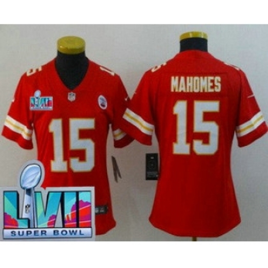 >Women's Kansas City Chiefs #15 Patrick Mahomes Limited Red Super Bowl LVII Vapor Jersey