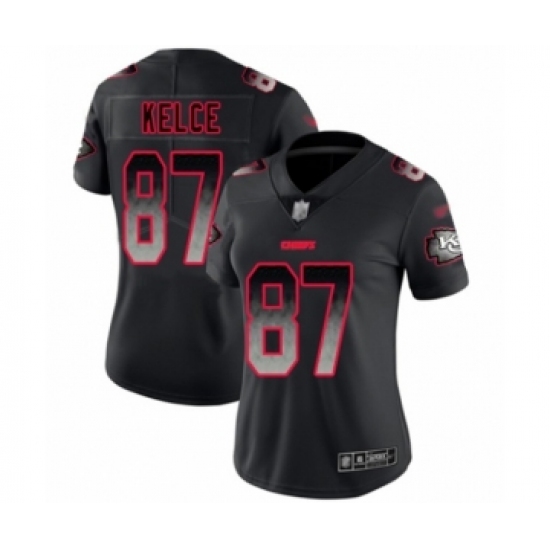 >Women's Kansas City Chiefs #87 Travis Kelce Limited Black Smoke Fashion Football Jersey