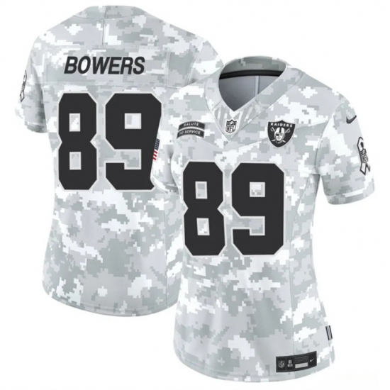 >Women's Las Vegas Raiders #89 Brock Bowers 2024 F.U.S.E Arctic Camo Salute To Service Limited Stitched Jersey(Run Small)
