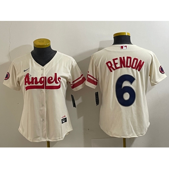 Women's Los Angeles Angels #6 Anthony Rendon Cream 2022 City Connect Cool Base Stitched Jersey