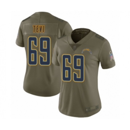 >Women's Los Angeles Chargers #69 Sam Tevi Limited Olive 2017 Salute to Service Football Jersey