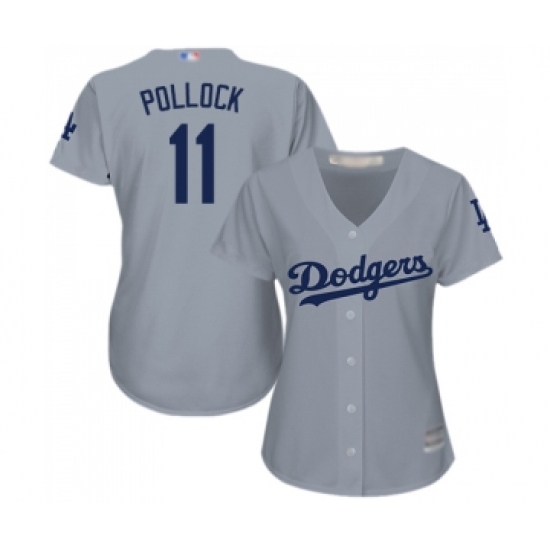 Women's Los Angeles Dodgers #11 A. J. Pollock Authentic Grey Road Cool Base Baseball Jersey