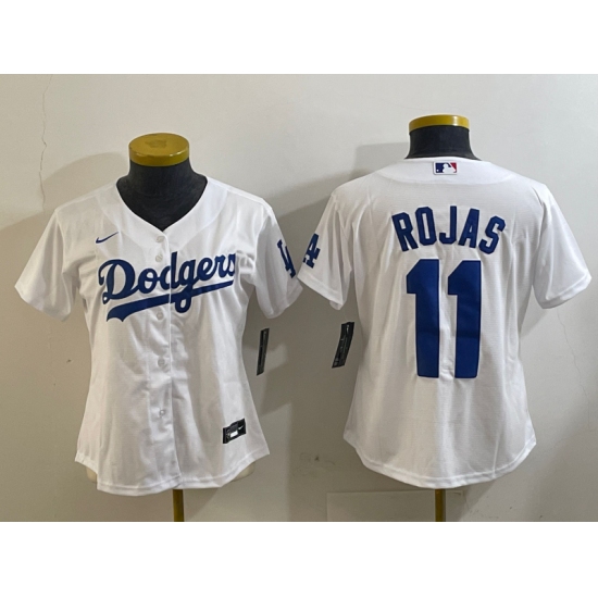 >Women's Los Angeles Dodgers #11 Miguel Rojas White Cool Base Stitched Jersey