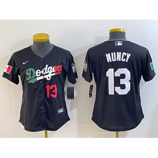 Women's Los Angeles Dodgers #13 Max Muncy Number Black Mexico 2020 World Series Cool Base Nike Jersey