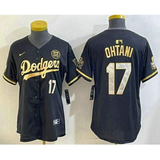 >Women's Los Angeles Dodgers #17 Shohei Ohtani Black Gold 2024 World Series 34 Stitched Cool Base Jersey