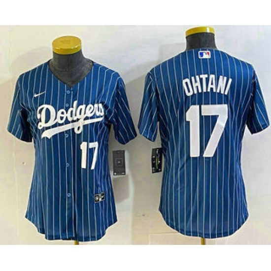 Women's Los Angeles Dodgers #17 Shohei Ohtani Number Blue Pinstripe Cool Base Stitched Baseball Jersey