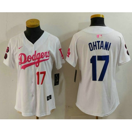 Women's Los Angeles Dodgers #17 Shohei Ohtani Number White Pink With Limited Stitched Jersey