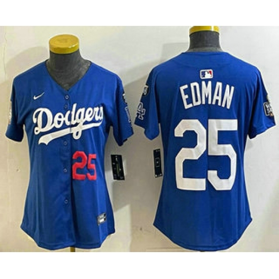 Women's Los Angeles Dodgers #25 Tommy Edman Number Blue 2024 World Series With Fernando 34 Fashion Limited Stitched Jerseys