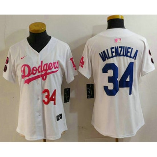 Women's Los Angeles Dodgers #34 Toro Valenzuela Number White Pink With Limited Stitched Jersey