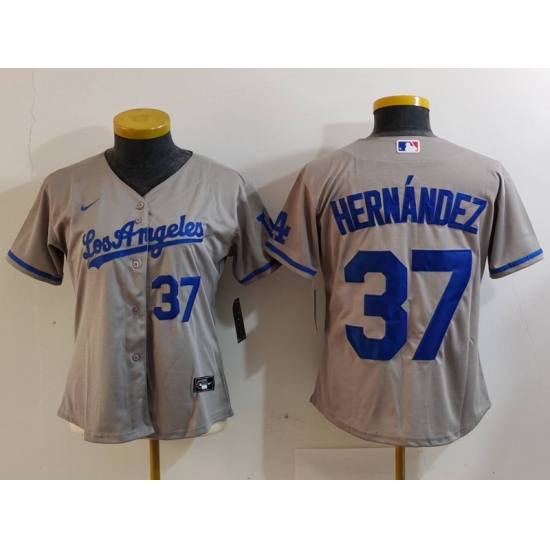 Women's Los Angeles Dodgers #37 Teoscar Hernandez Number Grey With Los Cool Base Stitched Jerseys
