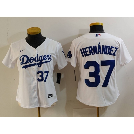 >Women's Los Angeles Dodgers #37 Teoscar Hernandez Number White Cool Base Stitched Jerseys